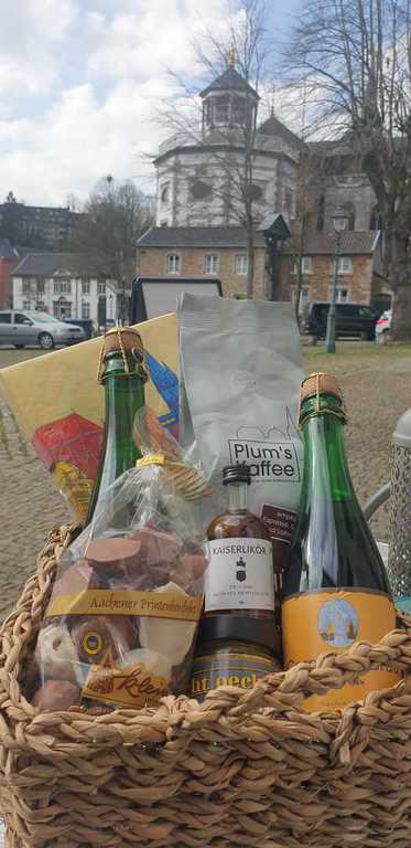 Ein Sortiment der Vielfalt aus Aachen an einem Platz. In die Innenstadt von Aachen zu fahren, diese Auswahl dort zu ergattern und etwas zusammen zu stellen, was die Liebsten freut?
